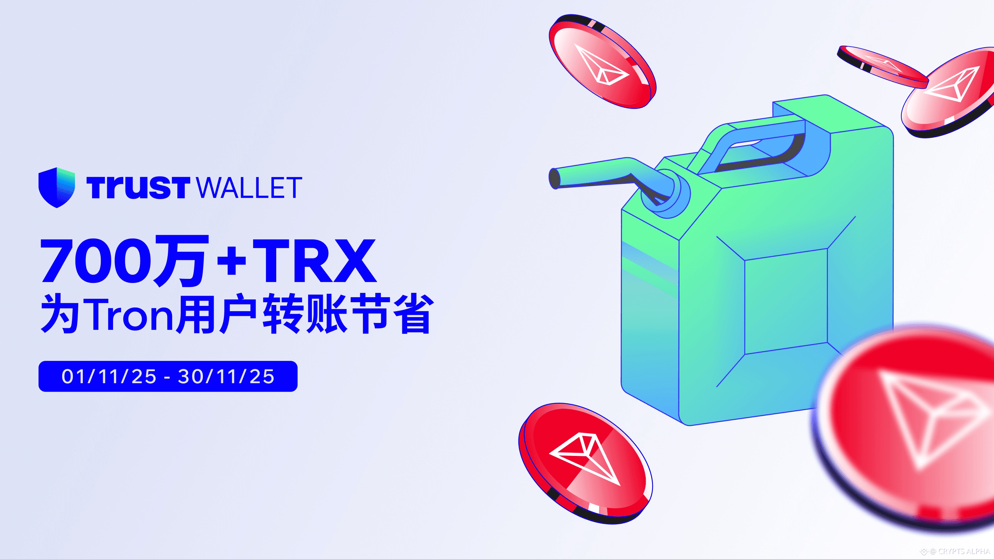 🚨 Trust Wallet 用户节省了超过 7,000,000+ TRX 的 @TRON DAO Gas 费。