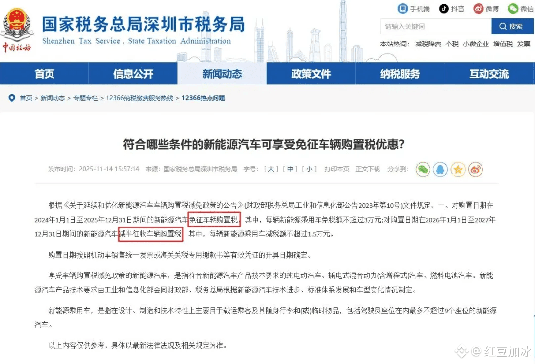 🚗新能源车彩蛋:2025年12月31日前买新能源车免征购置税,2026年起减半。10万车多花4425元,20万车多花8850元,刚需车主别错过最后窗口期(以开票日期为准)。