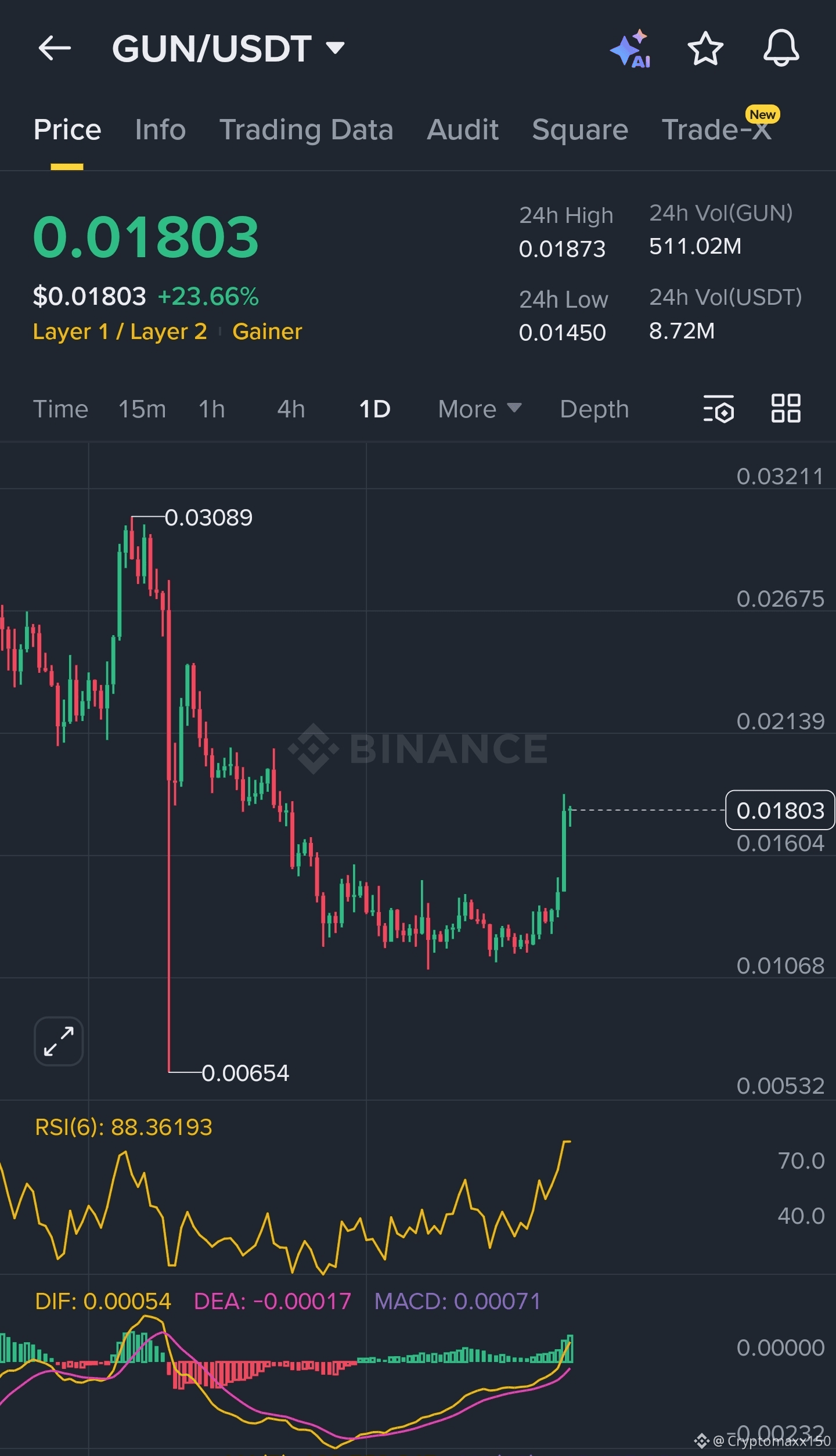 $GUN has delivered a strong upside move, gaining +23% in the last 24h, driven by clear bullish momentum across key indicators. Price action remains above short- and mid-term EMAs, while MACD continues to expand in positive territory, confirming trend strength.