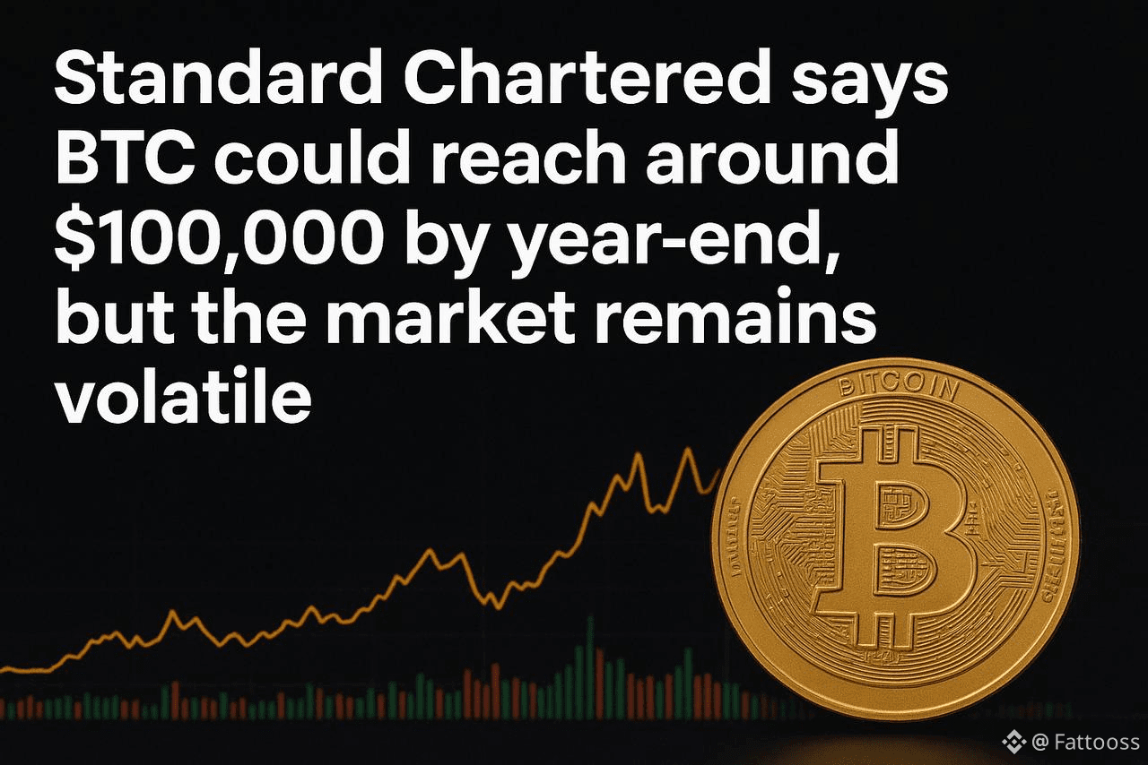 Standard Chartered now expects Bitcoin $BTC to hit around $100,000 #bitcoin by the end of the year (slightly lower than earlier optimistic targets). However, the crypto market remains highly volatile, so price swings are still strong.