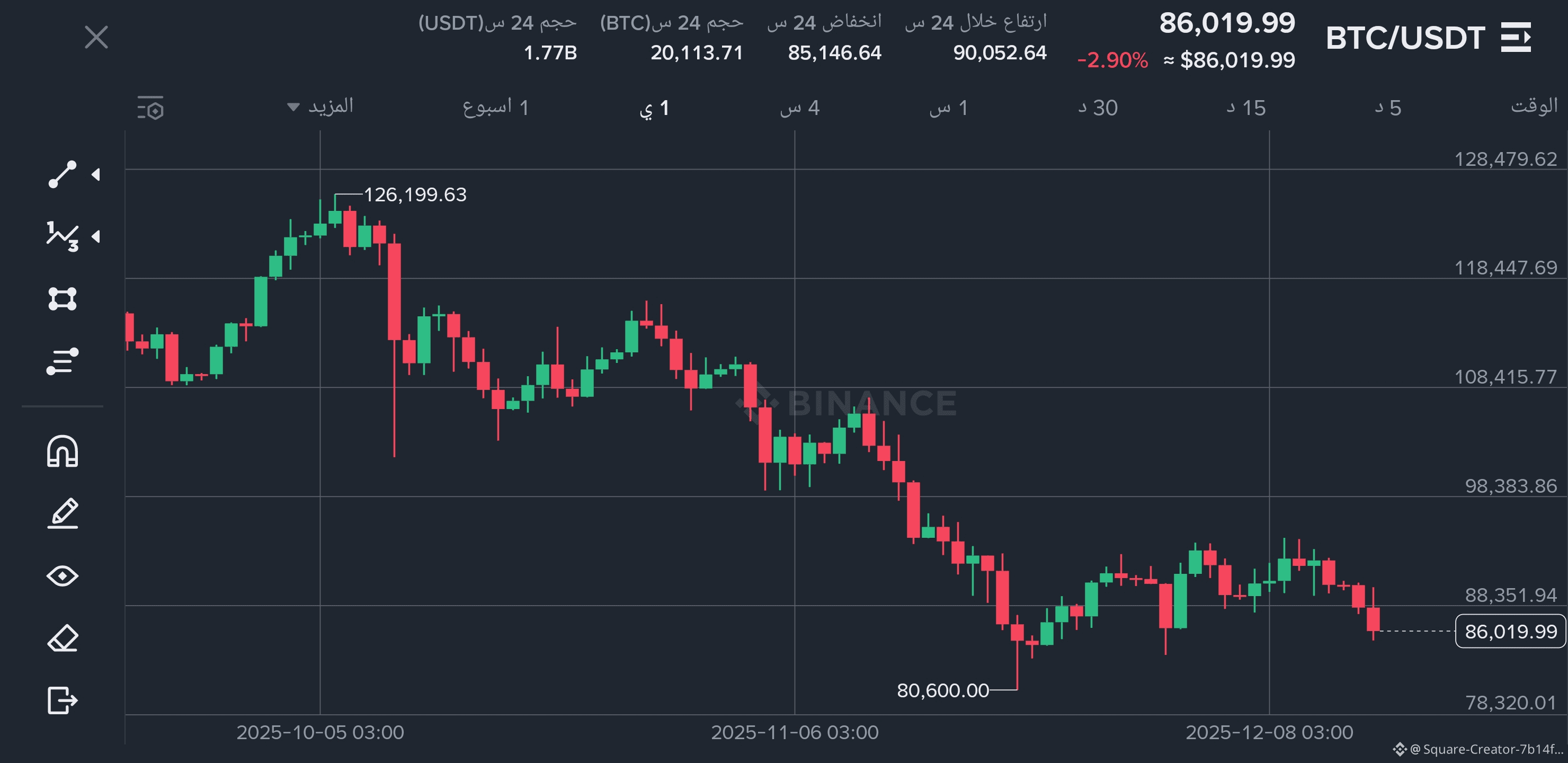 بعد الهبوط العنيف من ذروة $126,199 إلى قاع $80,600، نشهد الآن تذبذبًا حذرًا حول $86,019. لكن الأهم من ذلك، أن هذه الحركة تركت وراءها فجوات سعرية #Gaps واضحة على الرسم البياني، وهي مناطق لم يتم التداول فيها بشكل كافٍ.