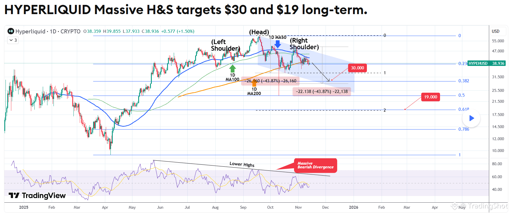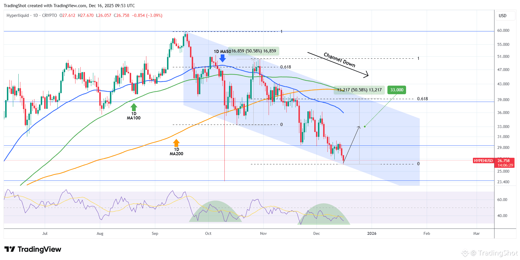 A month ago (November 13, see chart below), we gave a strong Sell Signal on Hyperliquid (HYPEUSD) after the Head and Shoulders (H&S) pattern turned into an obvious Channel Down, which easily hit our $30.00 Target: