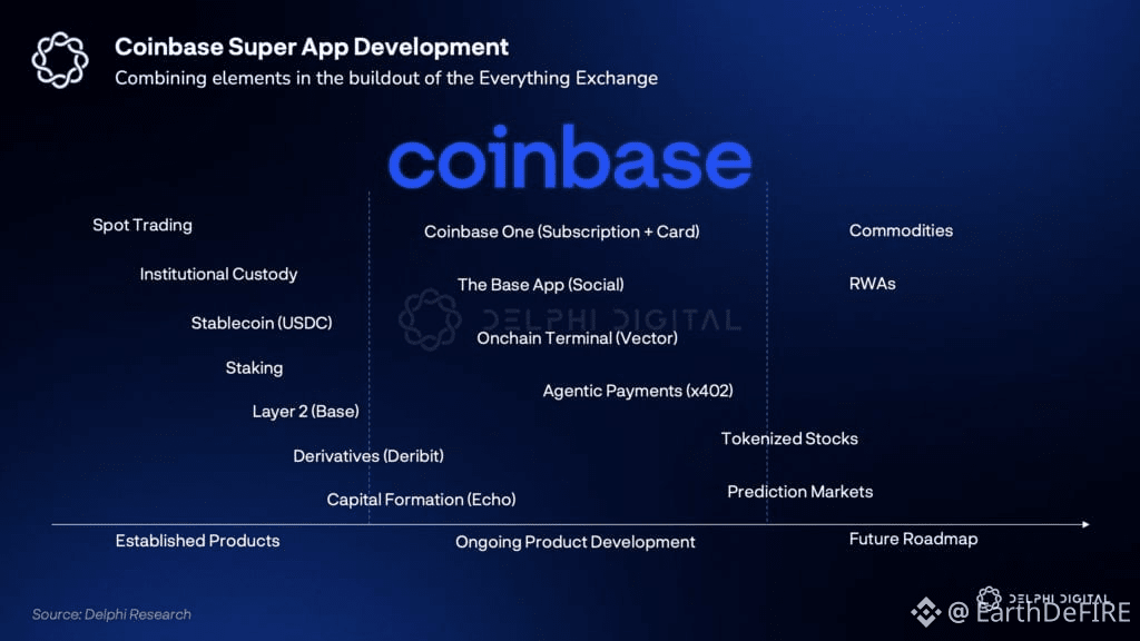 จดหมายถึงผู้ถือหุ้นไตรมาส 3 ของ Coinbase บอกชัดเลยว่าต้องการเป็นศูนย์เทรดทุกอย่าง พวกเขากำลังก้าวหน้า โดยเพิ่มสินทรัพย์เทรด (ครอบคลุม 90% มูลค่าตลาดคริปโต) ขยายอนุพันธ์ การชำระเงิน (USDC) Launchpad (Echo) และผลิตภัณฑ์ใหม่ผ่าน #Base นี่คือสัญญาณว่าตลาดกำลังรวมศูนย์ที่เลเยอร์แอป