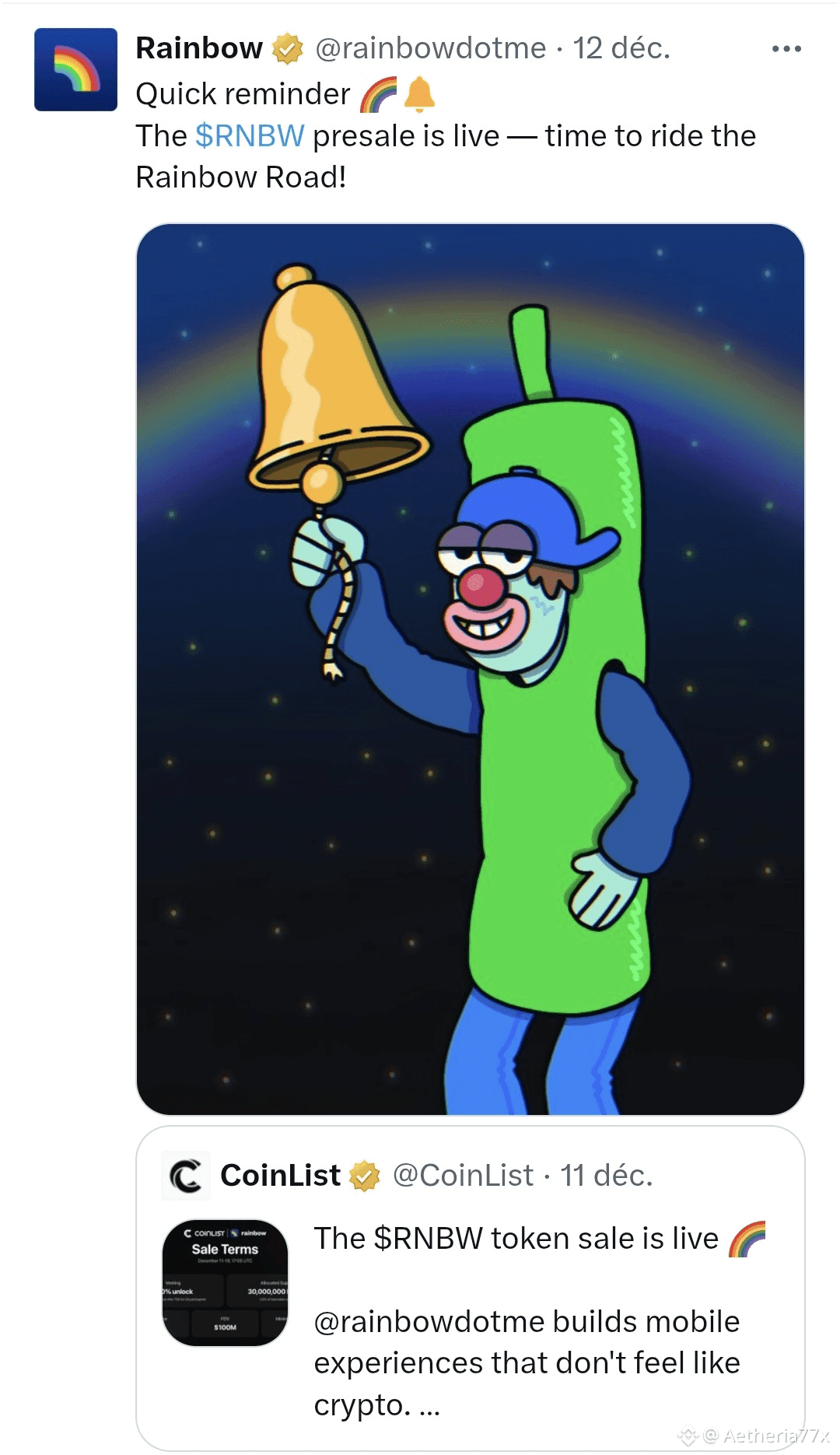 🔸️Rainbow lance son jeton $RNBW et récompense l'activité via un système de points, annonçant un airdrop au lancement (TGE).