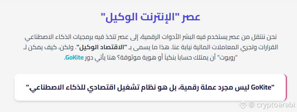 في عالم يتسارع فيه التطور التقني، يبرز مشروع @GoKiteAI كأول بلوك تشين في العالم مخصص بالكامل لخدمة مدفوعات الذكاء الاصطناعي، وهو ما يمثل نقلة نوعية في مفهوم "اقتصاد الآلة". بينما تعاني الشبكات التقليدية من البطء وارتفاع التكاليف، يأتي نظام #KITE ليقدم بنية تحتية فائقة السرعة، مصممة خصيصاً لتسمح للوكلاء الذكيين (AI Agents) بإجراء معاملات مالية معقدة وفورية دون أي تدخل بشري، مما يضمن كفاءة لا متناهية في قطاع الـ Web3.