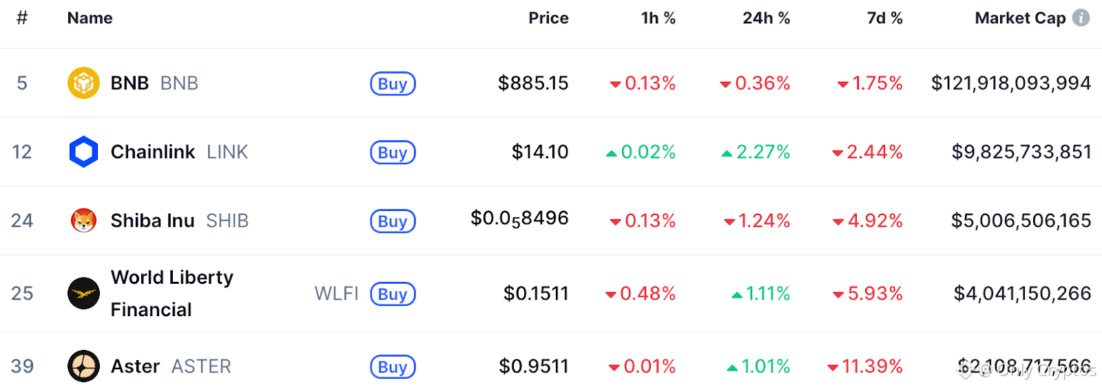Meanwhile, the majority of the top BNB ecosystem tokens are in the red this week, with Aster (ASTER) showing particular weakness, losing 11.4% week-over-week (WoW).
