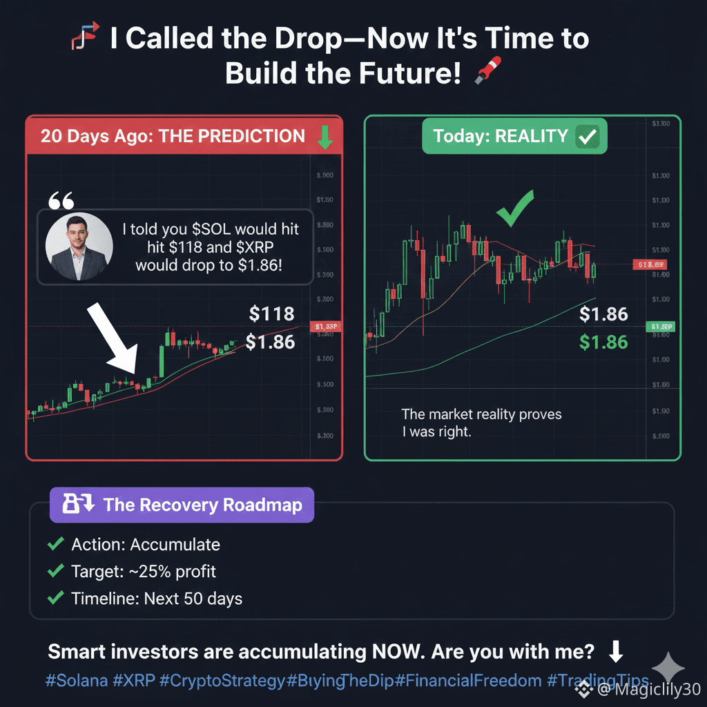 Twenty days ago, I gave you a clear warning: I told you SOL Would hit $118 and XRP Could drop to $1.86. Today, the market reality proves I was right. While others were blinded by hype, we followed the charts.