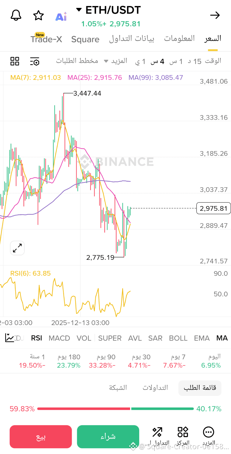 حاليًا السعر حول 2975 ويحاول استعادة السيطرة.