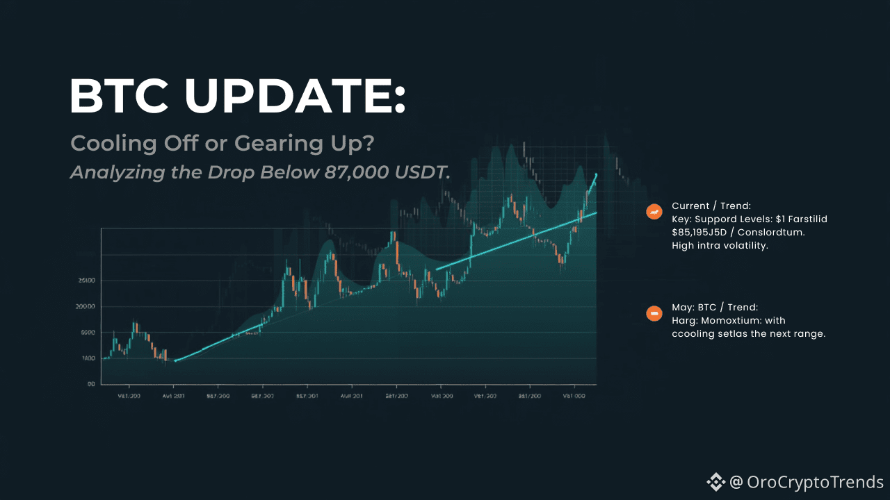 The present market structure has the potential for a "cooling period." Though BTC was able to shrug off selling pressure during the week's early days—bouncing from lows near $84,000—the struggle to maintain ground above $87,000 indicates a tug-of-war between bulls and bears.