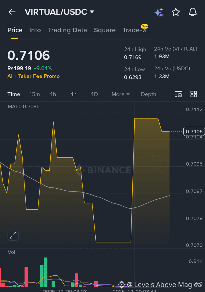As of the latest market data, VIRTUAL is trading around ~$0.70 USD, though prices fluctuate due to market volatility.