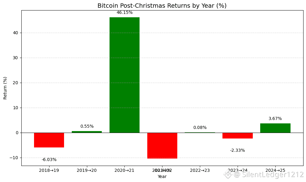 🎄 BTC often rallies before Christmas, but post-Christmas gains are mixed.