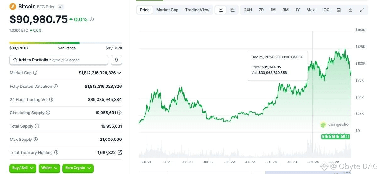 By Christmas 2021, $BTC hovered near $50,654, and its crypto market cap reached over $2 trillion. The 2022 slump dragged price to ~$16,801. In 2023, a rebound brought BTC to ~$37,800; while 2024 closed the year with a dramatic ~$99,000 for BTC and a total crypto market cap around $3.4 trillion.