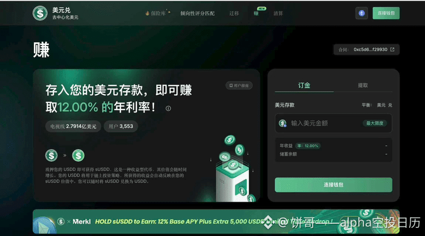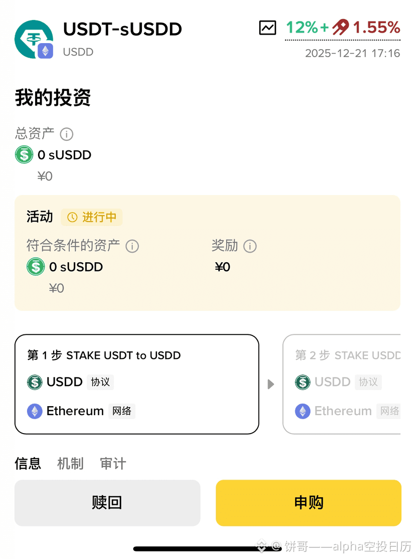 最近孙宇晨的USDD赚币活动在币安钱包上线了,年化能到12%以上,这行情里真的算香饽饽了!算笔实在账,投个八九万,一年躺赚小一万,对比现在币圈这跌跌不休的熊样,这收益确实够亮眼。
