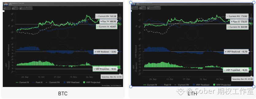VRP(波动率风险溢价=隐含波动率IV - 已实现波动率RV)是衡量期权定价是否合理的重要指标。当前市场正处于修正期。
