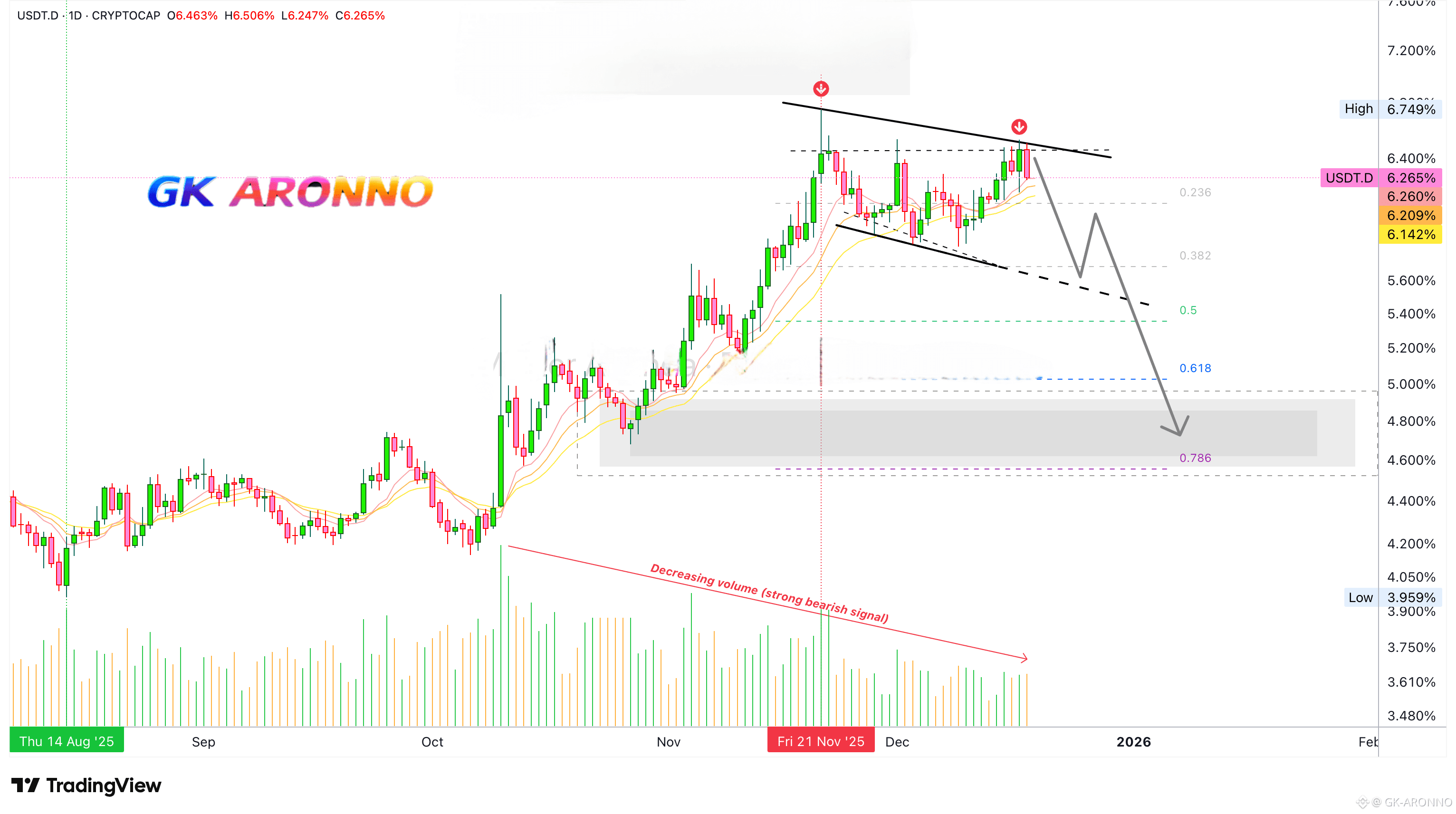 In this way we can see the inverse relation between USDT.D (Tether Dominance) and the Cryptocurrency market.