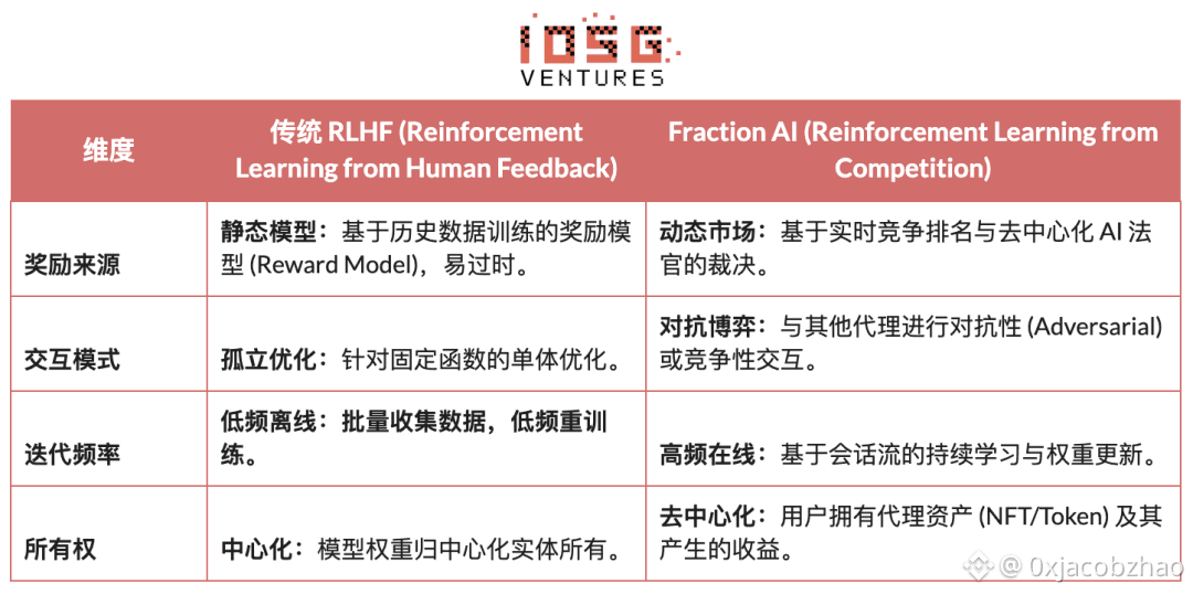 传统RLHF与Fraction AI的RLFC之间的核心差异: