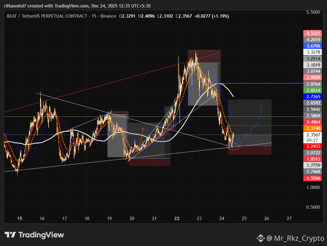 1. Current Trend The price of $BEAT has experienced a sharp decline but has recently found strong buying interest at a key support level. This has initiated a short-term upward recovery, attempting to reverse the recent downtrend.