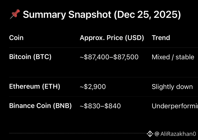 📈 Crypto Market Update: BTC, ETH, BNB – December 25, 2025