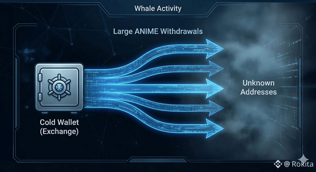 En cuanto al análisis de flujo, los grandes movimientos observados sugieren una distribución del activo. Se han detectado varios retiros de grandes cantidades de ANIME desde billeteras frías de intercambio hacia direcciones desconocidas.