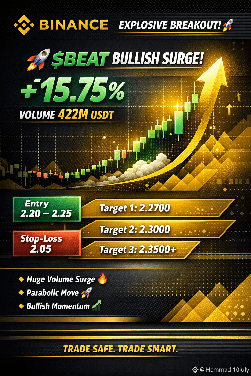 BEAT has exploded with a strong +15.75% upward move, backed by massive trading volume exceeding 422M USDT. This powerful combination of price action + volume clearly signals aggressive accumulation and strong buyer dominance.