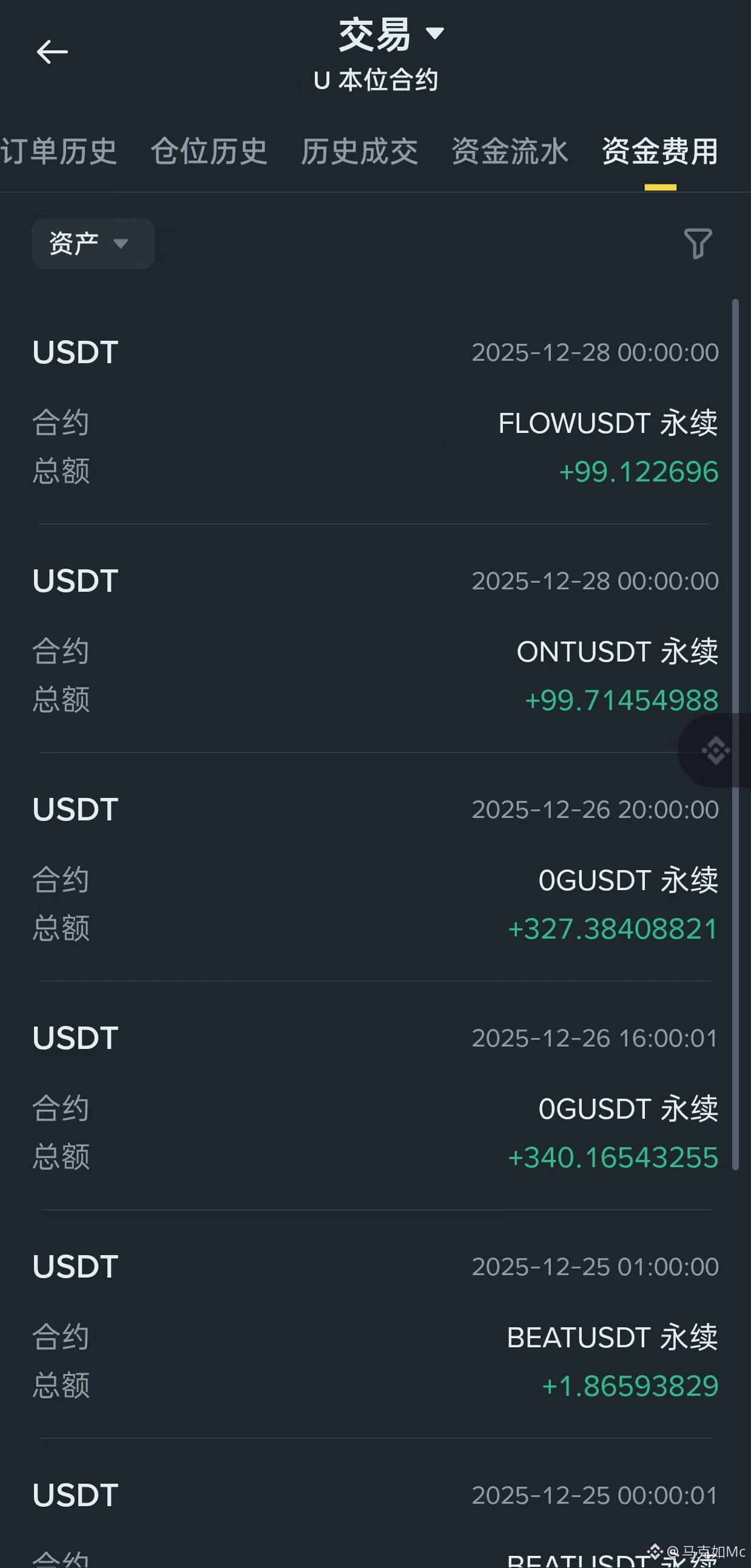 这是最近比较火的且有套利差的币,比如 $FOLW , $ONT , $0G。平均下来每次出手赚50~200U左右,要看你仓位的平仓速度,不爆仓节省的越多,赚的就越多