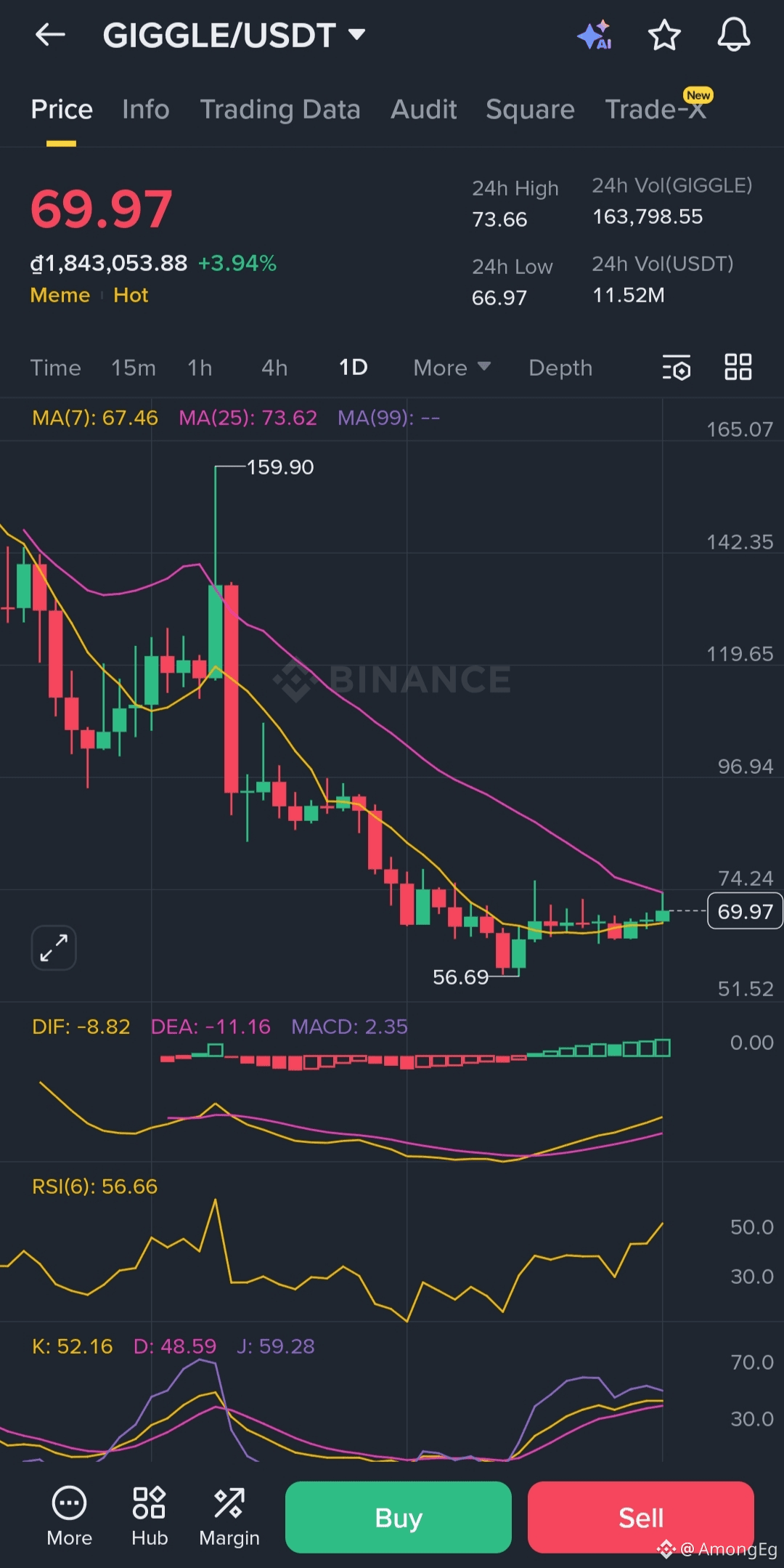 $GIGGLE just bounced from $56.69 and is now $69.97!