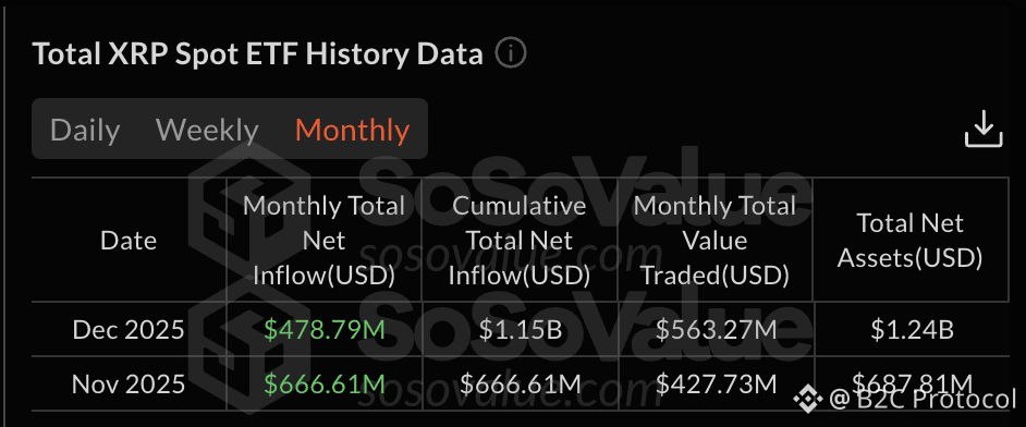 Os traders destacam que a oferta apertada apoia uma perspectiva de alta, enquanto os analistas também observam que os ETFs estão gradualmente posicionando o XRP como um ativo de grau institucional para 2026. Os ETFs de XRP continuam a mostrar ganhos consistentes na última semana deste ano. No total, os fundos de XRP atraíram $478 milhões este mês.
