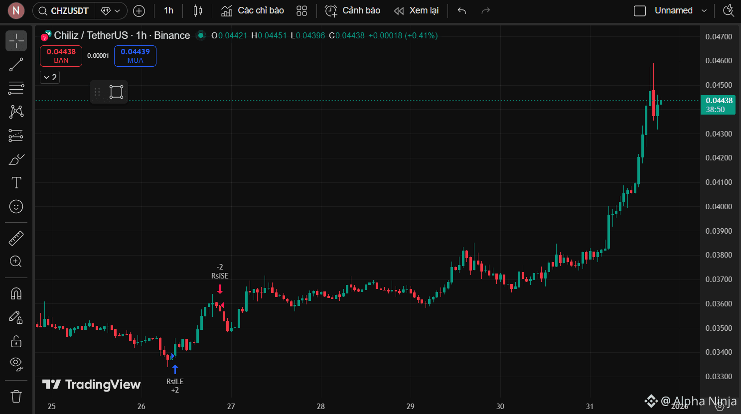 Rất nhiều trader đang hí hửng nhồi lệnh bán khi thấy giá tăng quá nhanh, tin rằng đây chỉ là một cú "pump ảo" cuối năm. Tuy nhiên, họ đã lầm khi bỏ qua việc thanh khoản phía trên đã hoàn toàn trống rỗng sau giai đoạn nén lò xo cực hạn quanh mốc $0.038. Cấu trúc nến xanh đặc dài liên tiếp trên khung 1H là minh chứng cho một cú "Short Squeeze" quy mô lớn đang diễn ra. Một khi các lệnh dừng lỗ bị kích hoạt, chúng sẽ trở thành nhiên liệu dồi dào nhất đẩy giá bay thẳng vào vùng không trọng lực.