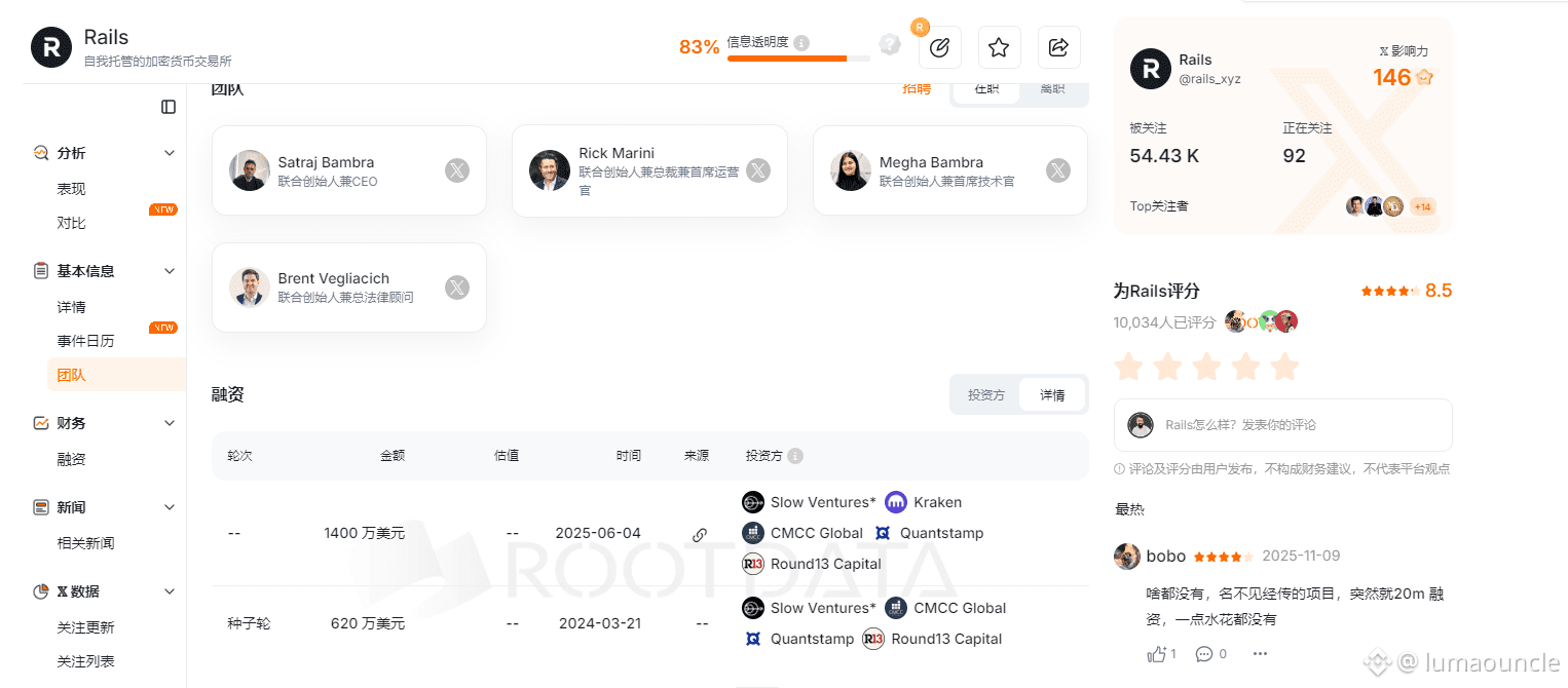 🚀Rails 是混合型永续合约交易平台(CEX 级速度 + 链上自托管),融资超 2000 万美元(Kraken 等机构领投),项目明牌40% 分配给社区。Rails Points 将在 2026 Q1 TGE 时转换为 $RAILS(不同阶段转换率不同),当前积分系统+Leaderboard 仍在活跃运行,2026 开年继续撸,明牌值得冲!