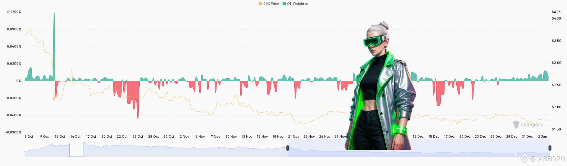 Now, as we ease into January, there's a whisper of something. The price is trying to poke its head above that $1.90-$2 line, and we've seen a couple of green sparks on the OI-Weighted. Nothing crazy, but it suggests perhaps a little bit of interest is bubbling up again. Is CVX finally finding its floor and gathering some new eyes? Definitely one to keep on the watchlist if it starts showing more conviction out of this range. Could be an interesting setup brewing.