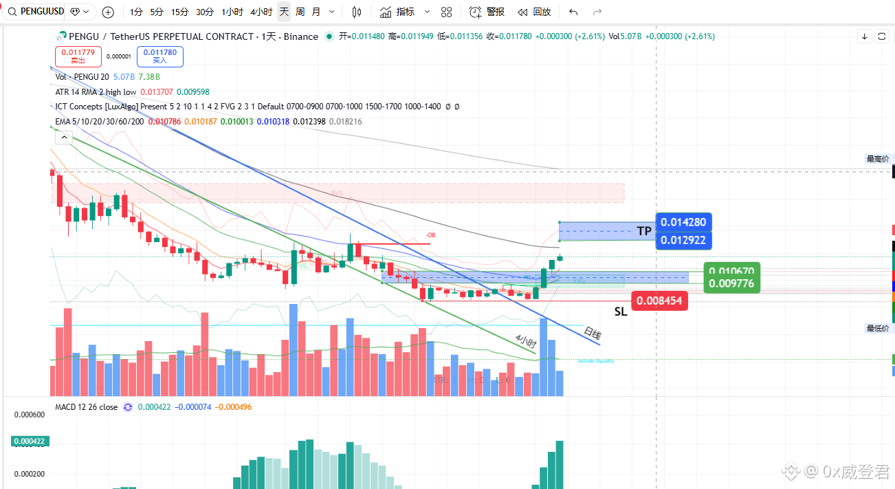 🎯止盈(TP):第一目标 0.012922,第二目标 0.014280,反弹空间充足。