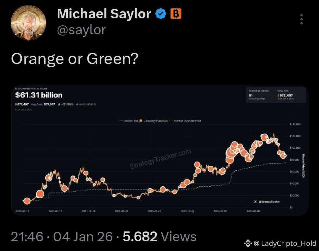 El reciente punto naranja de Michael Saylor volvió a demostrar su capacidad para alterar el comportamiento del mercado. Bitcoin superó los 91,000 dólares pocas horas después de una publicación del presidente de Strategy, reavivando la especulación sobre la estrategia de acumulación de MicroStrategy y su influencia en el sentimiento general.