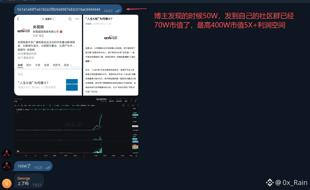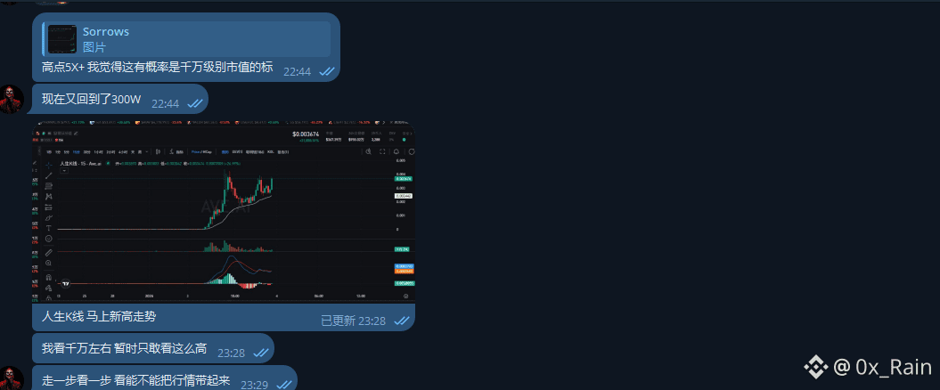 在今早又拉回新高附近,目前看起来比“人生K线”还走的要稳一点,社区群友和微信群友都获利出场,但依然对2个叙事标保持关注。