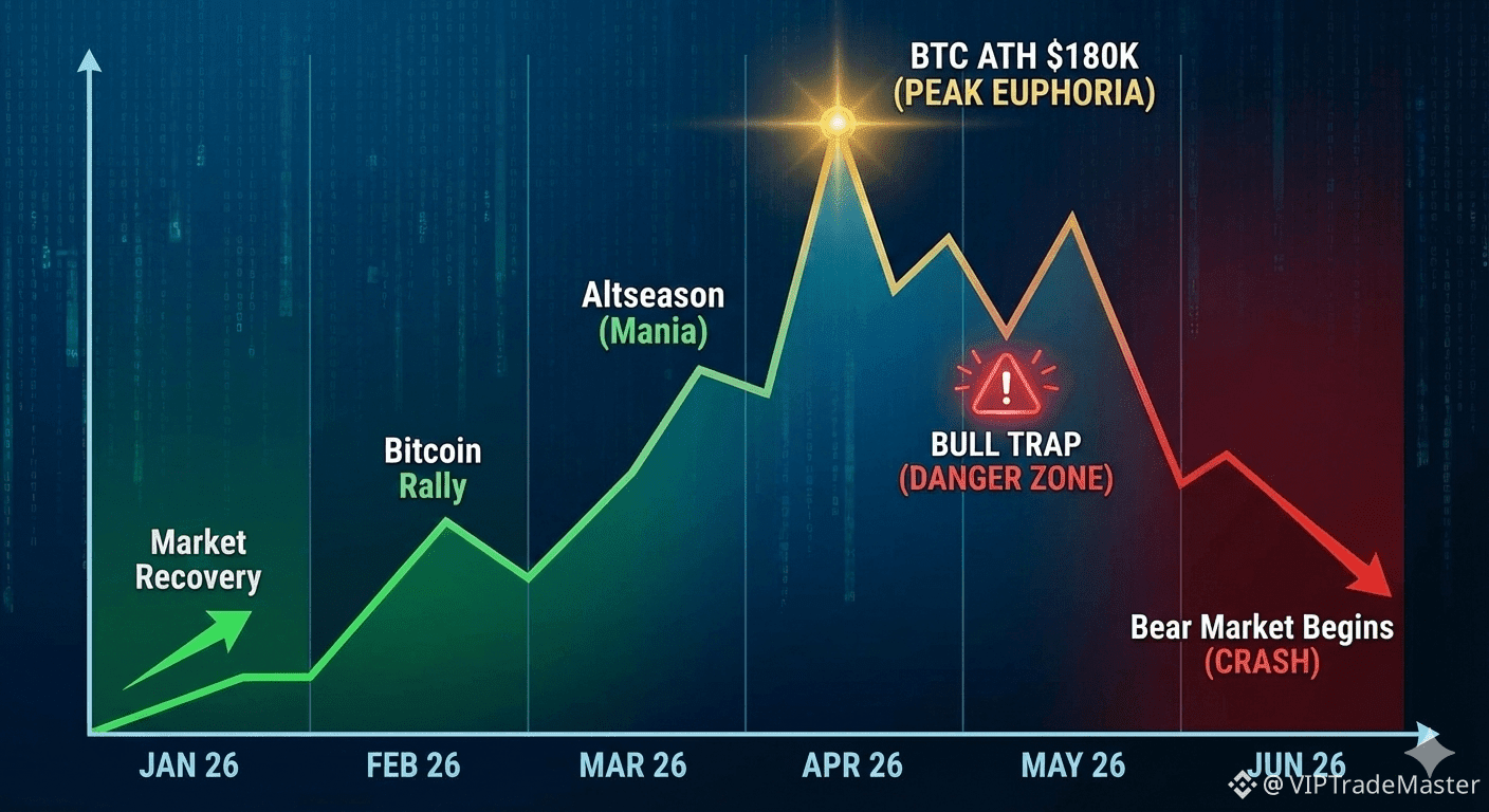 ​Timing is everything in $BTC crypto. A specific, aggressive roadmap has emerged for the first half of 2026, predicting a cycle that will mint millionaires in Q1 and wipe them out in Q2 if they aren't paying attention.