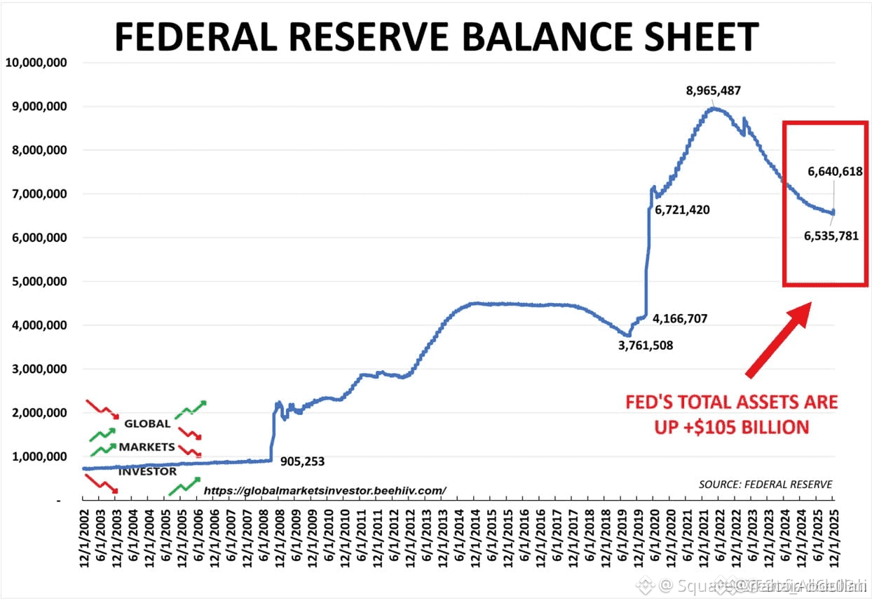 بعد أكثر من 3.5 سنوات من الانكماش، يشهد ميزانية بنك الاحتياطي الفيدرالي الآن نموًا سريعًا مرة أخرى. هذه تطور كبير لأن ميزانية بنك الاحتياطي الفيدرالي تعكس كمية الأموال التي تتدفق إلى النظام المالي — والتوسع المفاجئ يمكن أن يكون له آثار كبيرة على السيولة، والأسواق والاقتصاد.