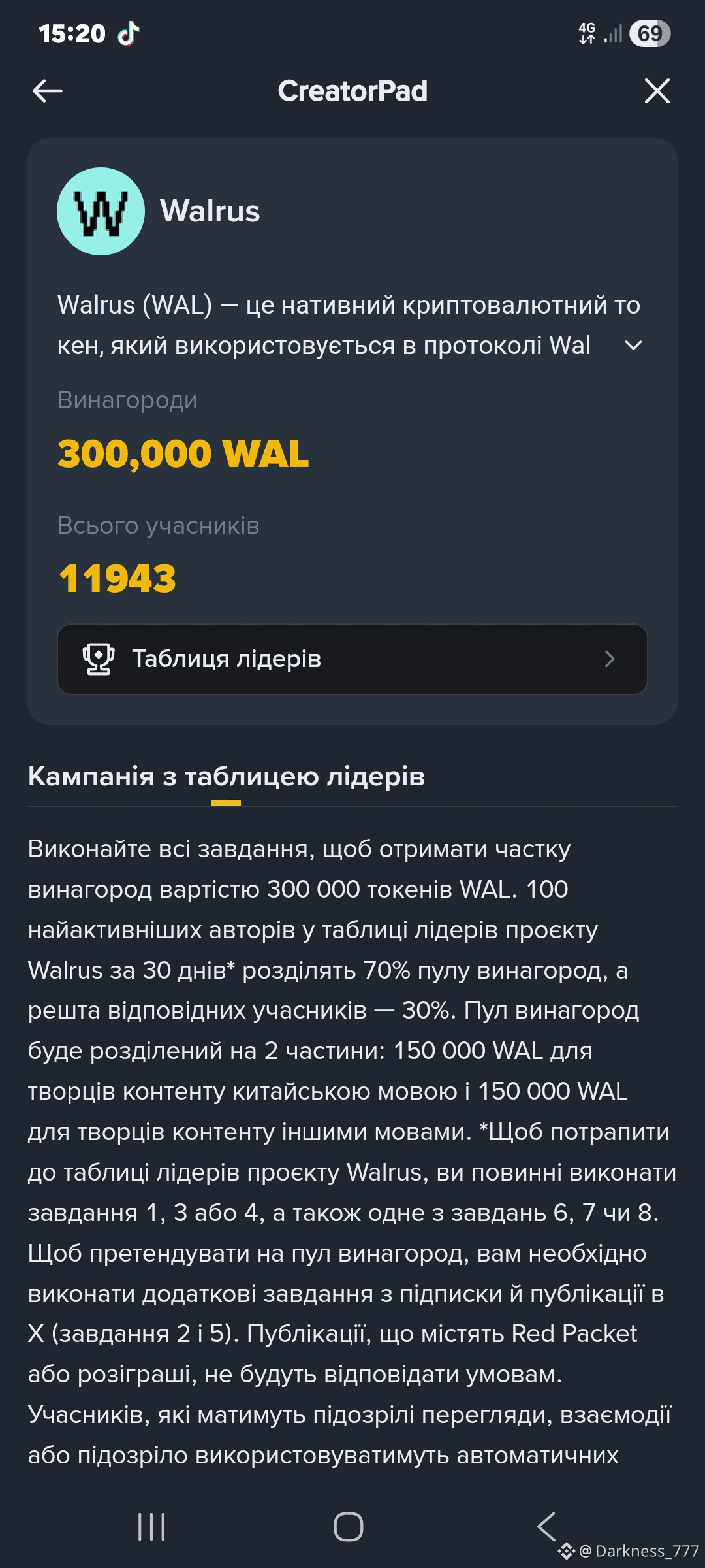 Друзі, мій шлях у криптосвіті продовжується, і сьогодні я хочу детальніше зупинитися на проекті, який зараз активно обговорюють у CreatorPad — це @walrusprotocol.