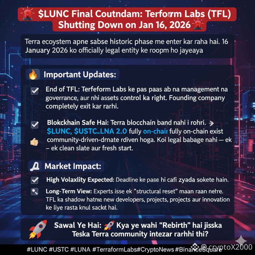 🚨 $LUNC Final Countdown: Terraform Labs (TFL) to Shut Down on Jan 16, 2026 🚨