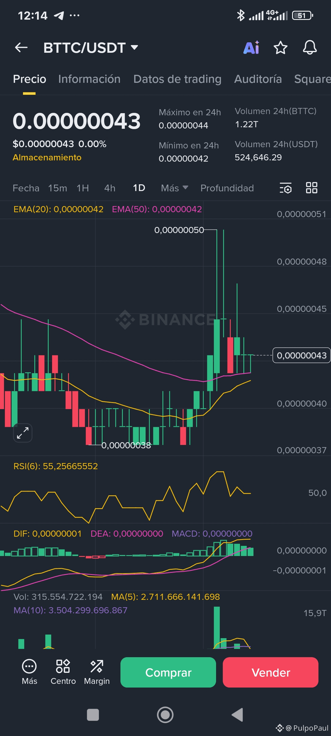 Soporte fuerte: 0.00000038 🛡️ (desde ahí rebotó con fuerza)