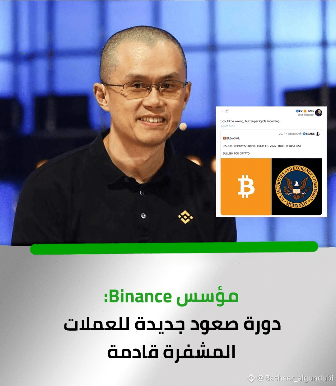 ونشر تشاو منشورًا عبر حسابه على منصة إكس (X)، أشار فيه إلى أن هيئة الأوراق المالية والبورصات الأميركية (#SEC ) قامت بـإزالة العملات المشفرة من قائمة المخاطر ذات الأولوية لعام 2026.