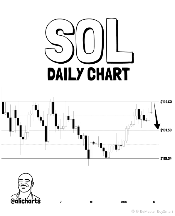 👉 Even though Solana has been making higher lows during this rebound, it still hasn't confirmed a real breakout on the daily timeframe. The fact that it can't reclaim $144.63 means downside risk is still very much on the table. The chart points to $131.53 as the next important level if the price gets rejected here. That zone lines up with previous consolidation and acts as a key support reference in the current range.