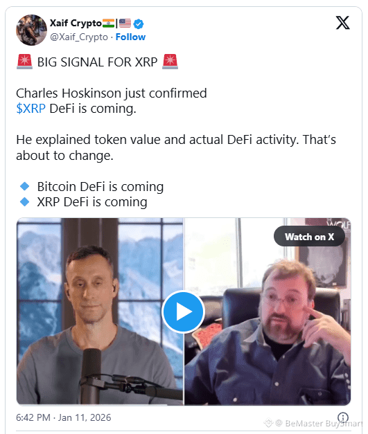 $XRP Crypto commentator Xaif (@Xaif_Crypto) recently shared a video featuring Cardano creator Charles Hoskinson, confirming that decentralized finance (DeFi) is coming to XRP. In the clip, Hoskinson highlighted the potential for XRP DeFi alongside Bitcoin DeFi, pointing to the expansion of blockchain interoperability and privacy features.
