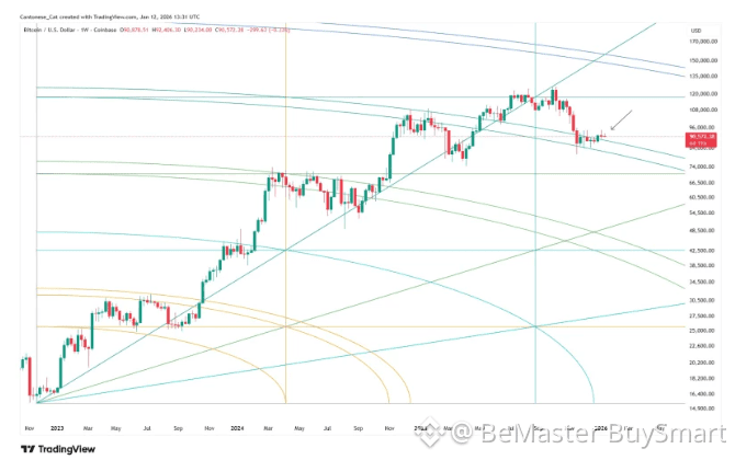 ๐ The chart also shows long-term market symmetry through intersecting arcs and angles that have historically matched up with key price zones. Within this framework, $80,000 stands out as an area where support is increasingly likely to develop if Bitcoin keeps consolidating or retests lower levels.