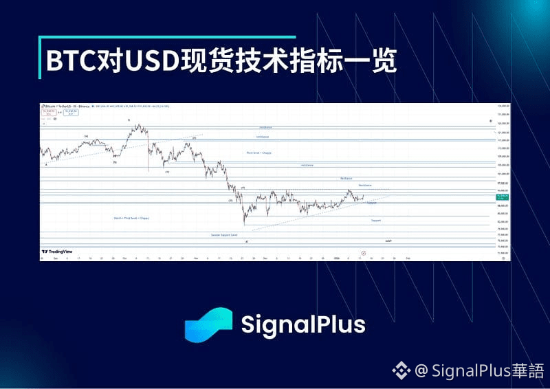 BTC现货市场延续了自11月底以来的横盘整理走势,持续下降的实际波动率让多空双方都感到受挫。价格走势可视为在一个楔形形态内运行,该形态在概率上略倾向于最终向下运动(之后形成最终反转),但鉴于过去两个月观察到的不错的支撑位,这也很有可能是更长期且更复杂的向上调整过程的一部分。目前尚无定论,但我们总体认为,从当前位置向下的空间(无论是幅度还是波动性)都将有限,而向上则具有更大的潜在终端运动空间,不过我们同样不预期会出现爆炸性的价格走势或波动。低于$89,000或高于$95,000可能会催化价格脱离当前的盘整期/楔形形态,我们建议在市场试图确定下一步动向时保持耐心。