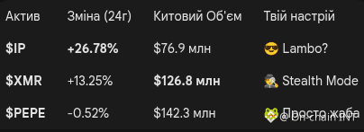 Що відбувається: Ціна злетіла на +26.78%. Але найцікавіше — кити прогнали $76.9 млн при капіталізації менше мільярда.