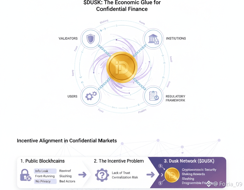Confidential market systems mark a big step forward for blockchain, especially in finance, where privacy, compliance, and finality aren’t just nice to have—they’re essential. That’s where Dusk Network steps in. It’s not just another blockchain; it’s built from the ground up for regulated, on-chain finance. At the heart of it all sits the DUSK token. It’s not a speculative coin. Think of DUSK as the network’s economic glue, pulling validators, users, and institutions into alignment. This article digs into how DUSK shapes incentives in confidential markets, making sure the system stays secure, sustainable, and in line with regulations.