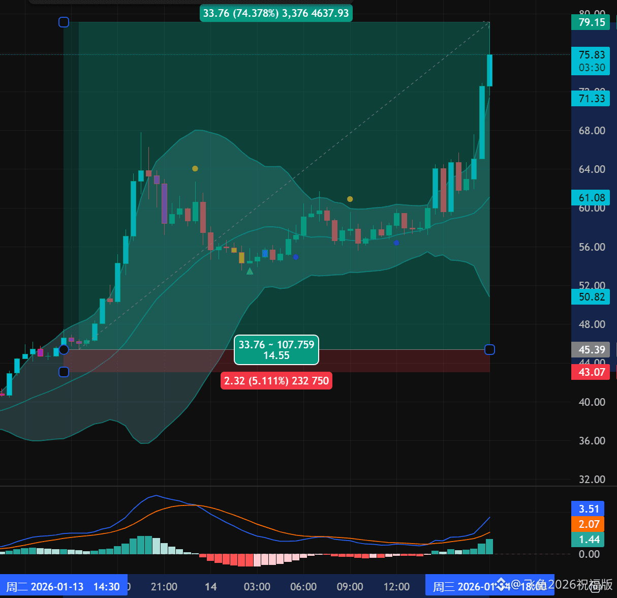 #DASH 疯狗模式开!这波涨幅74.37% 刚刚继续爆拉!最高79.16!昨日进场的这轮,完美止盈!完成所有目标!吃!又一个大肉!!!下一个机会在哪? $DASH