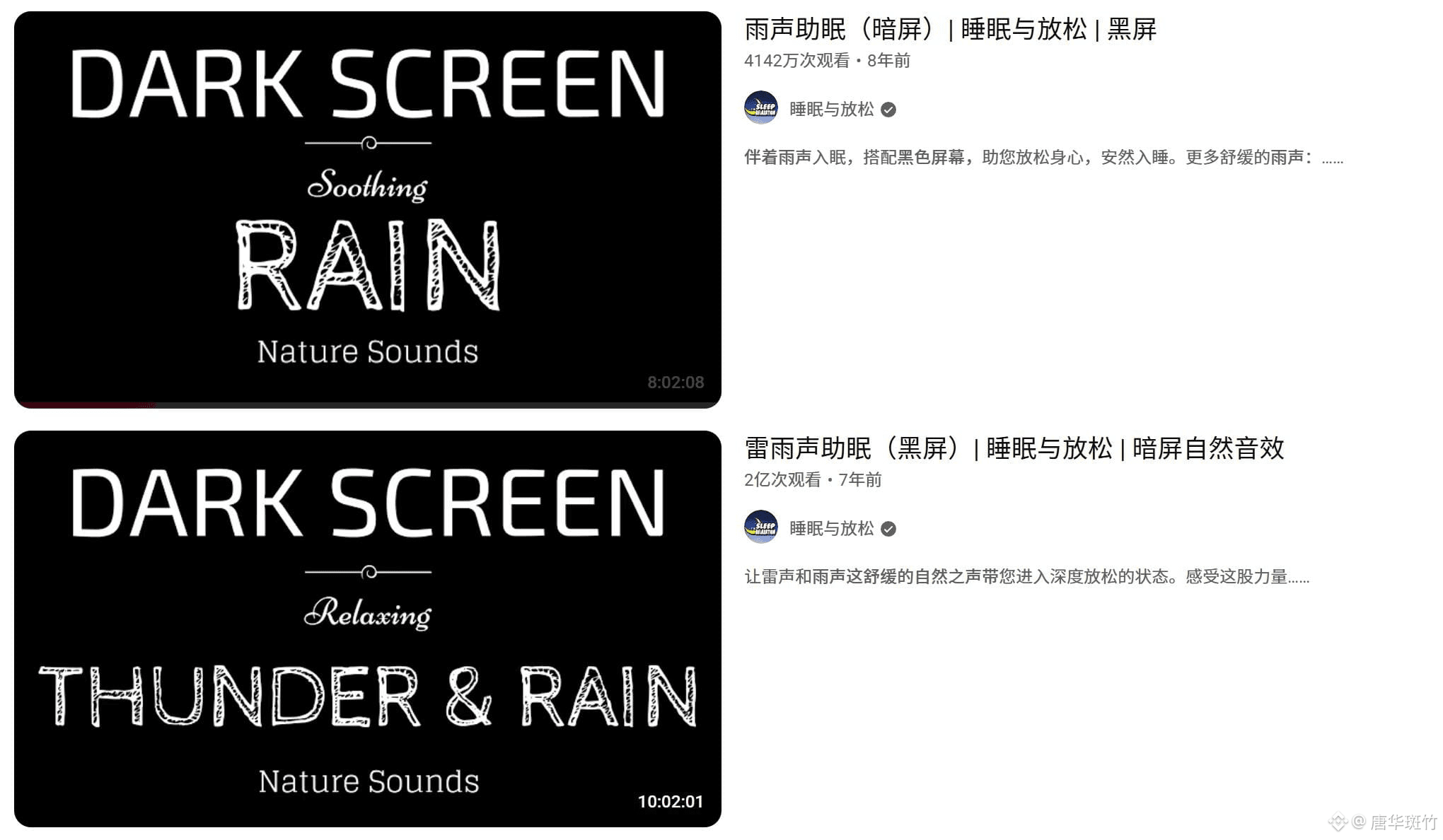 如果说拍壁炉还需要买点木头,那这个就是纯“零成本”。有些频道专门上传10小时的下雨声,画面甚至是全黑的!