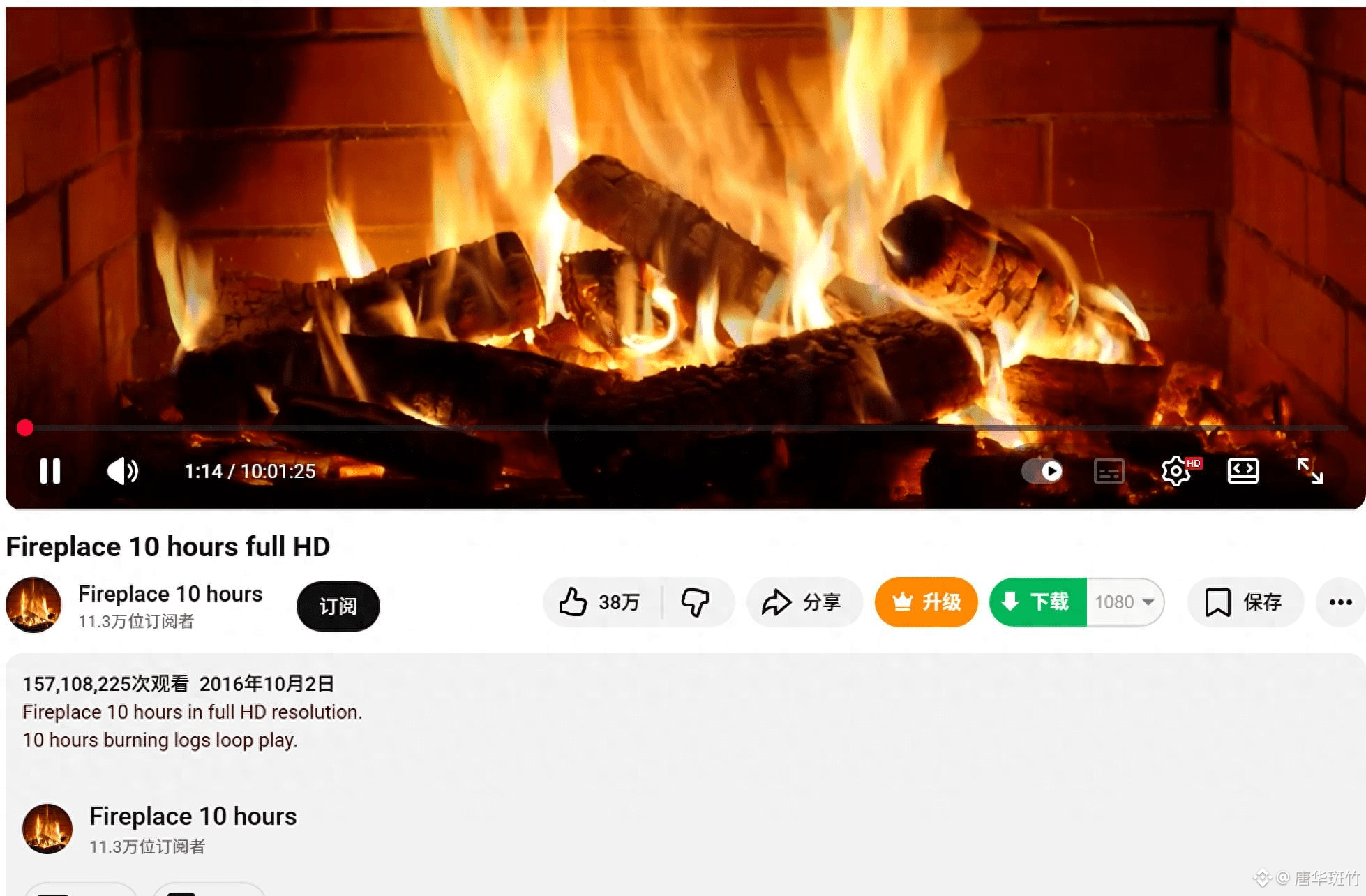 这个“壁炉10小时”的博主,也许当年只是随手架了个摄像机,然后出门买菜去了。但他无意中抓住了人类最原始的需求——对火光的依恋和对白噪音的依赖。