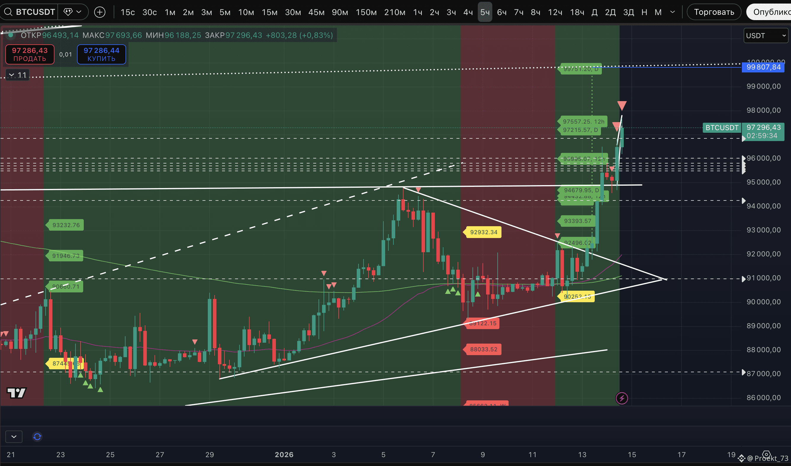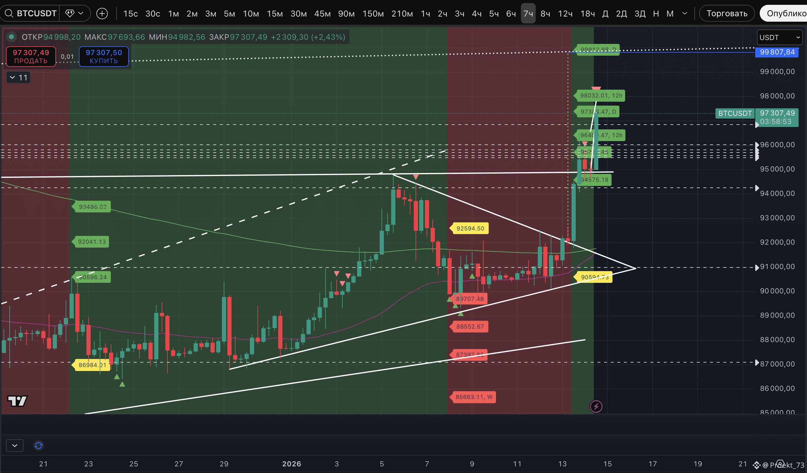 Постфактум, конечно, рост с ночных 95 250$ до текущих 97 693$ - смотрится хорошо. Но в моменте покупать именно на 95 250$ - идея была бы так себе.