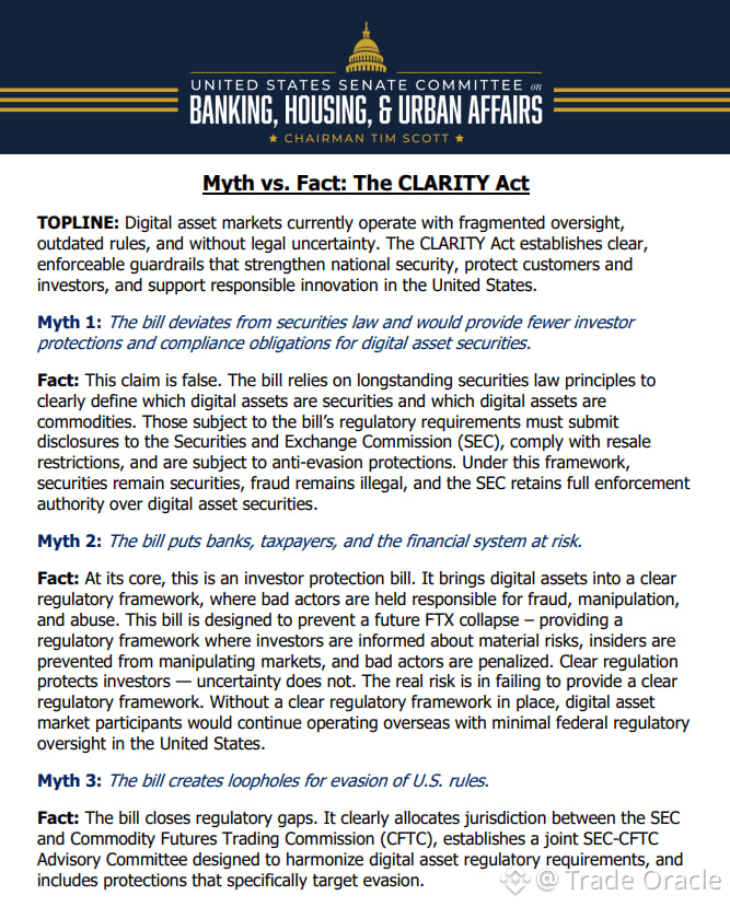 The US Senate Banking Committee has stepped in to address 7 major misconceptions surrounding the CLARITY Act—and the message is loud and clear: this bill is about investor protection, regulatory clarity, and responsible crypto innovation 🏛️🔐